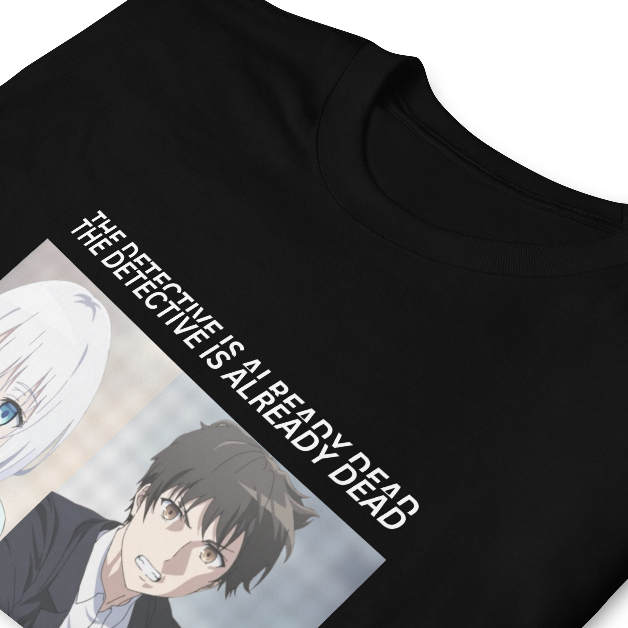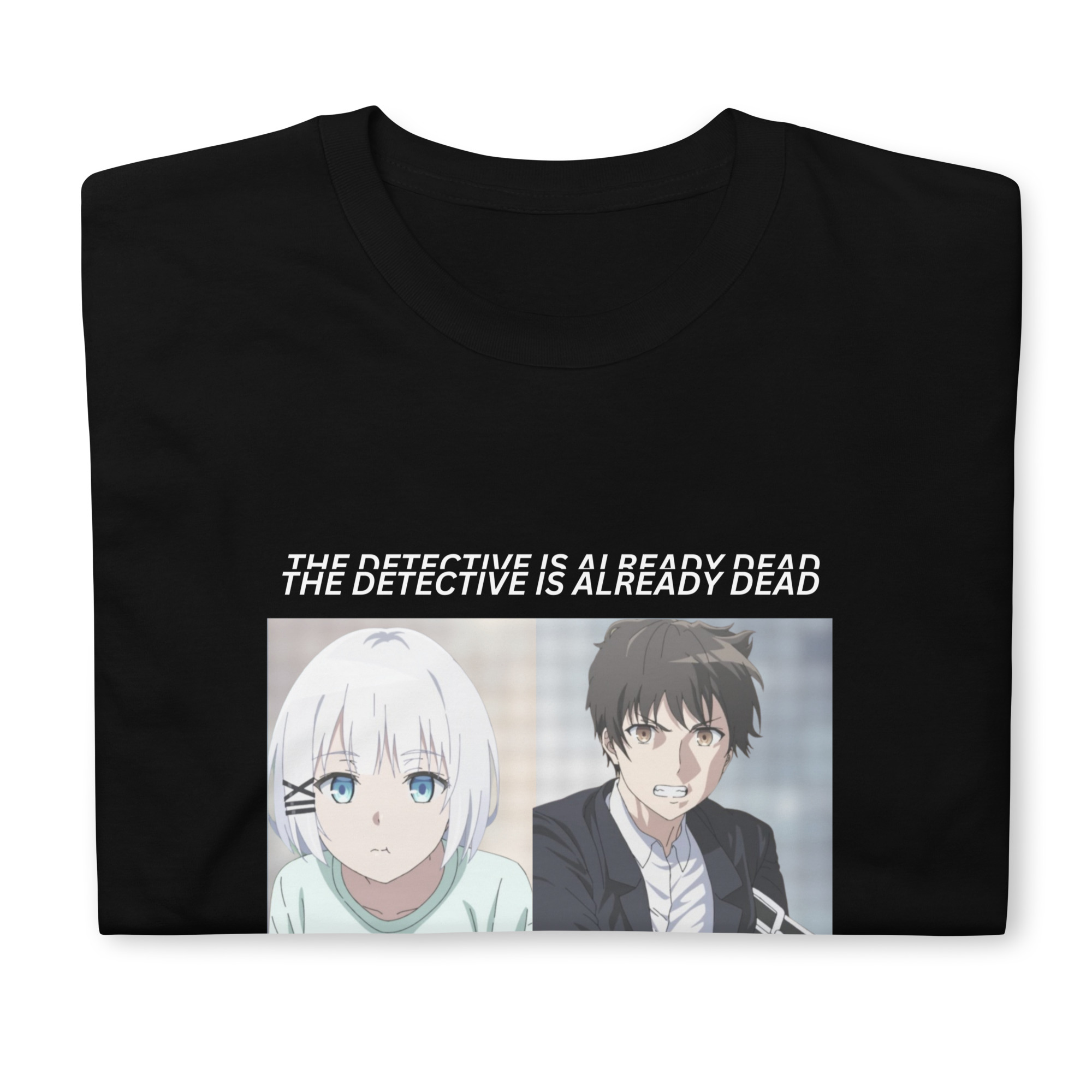 Step into the world of mystery and intrigue with the Detective Is Already Dead T-Shirt, a tribute to the captivating Japanese light novel series penned by Nigojū and brought to life by Umibōzu’s illustrations. Crafted with meticulous attention to detail, this tee embodies the essence of detective work and the enigmatic allure of its protagonists.