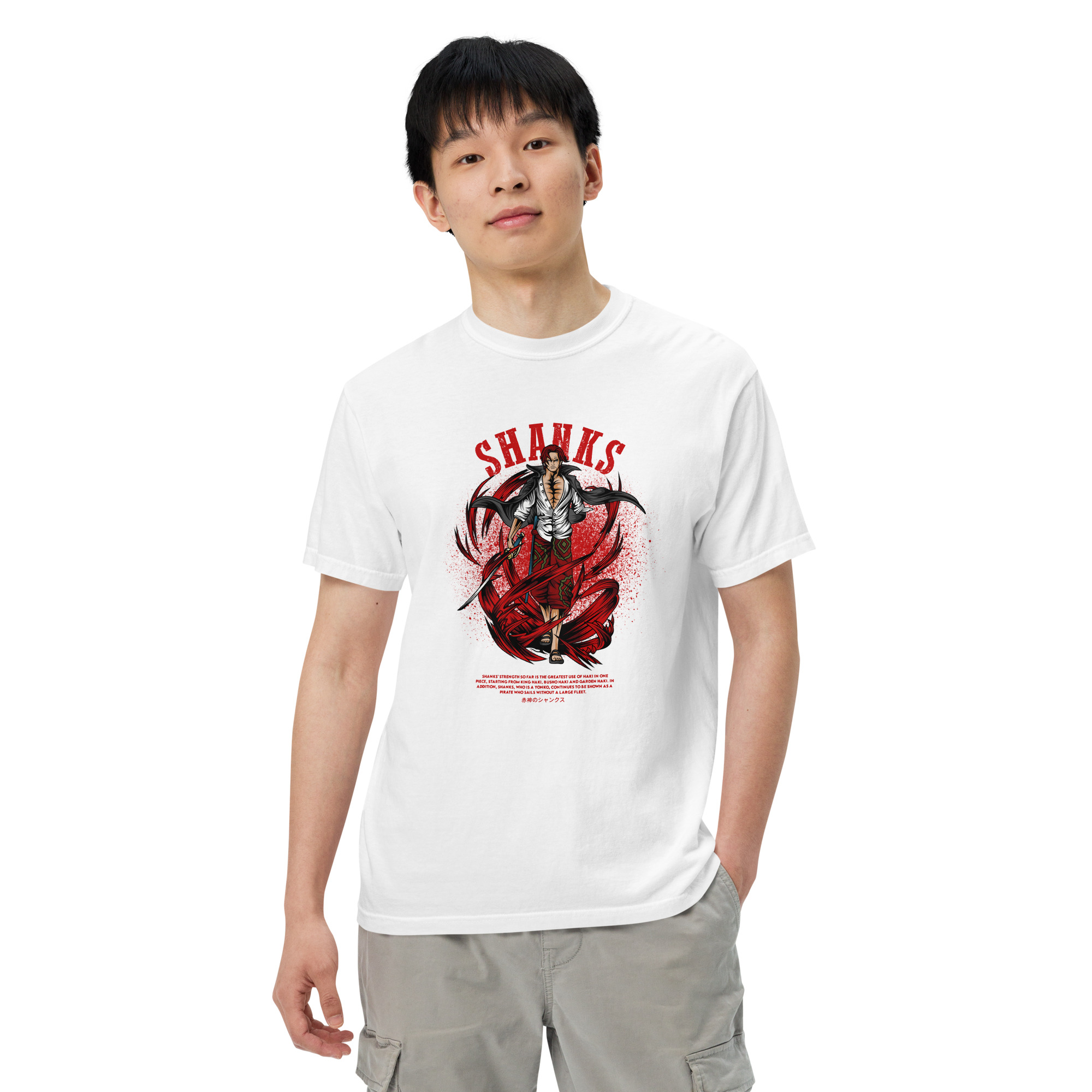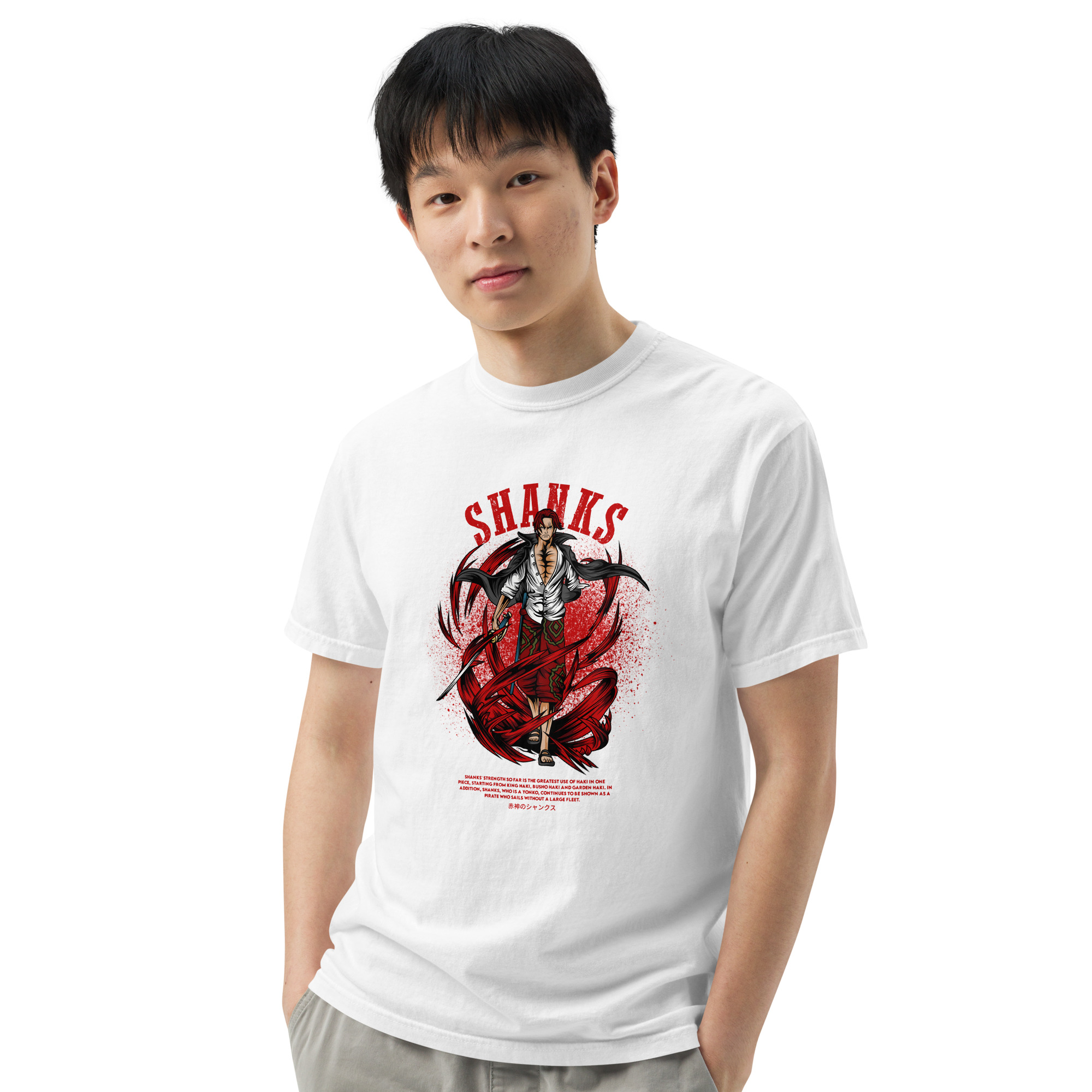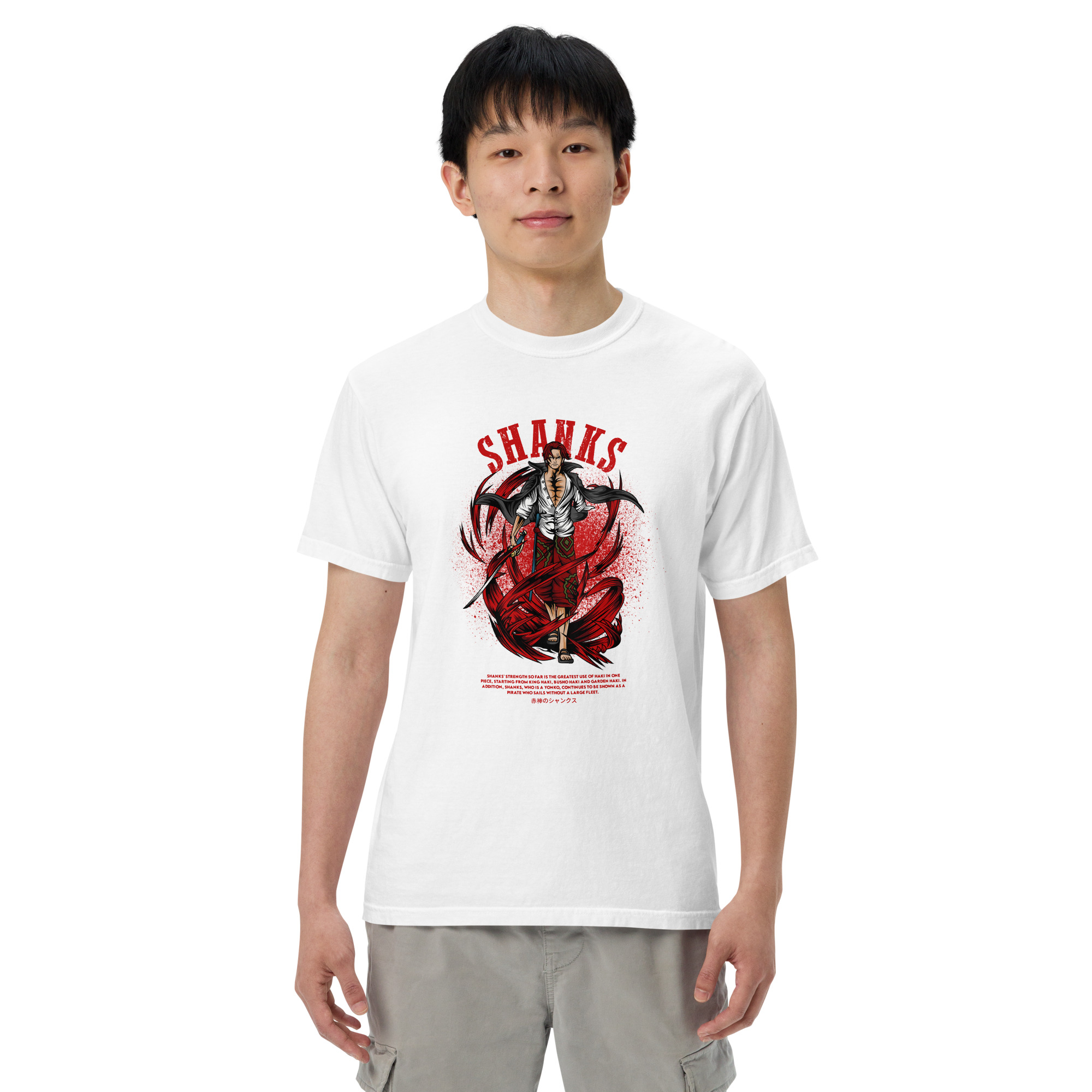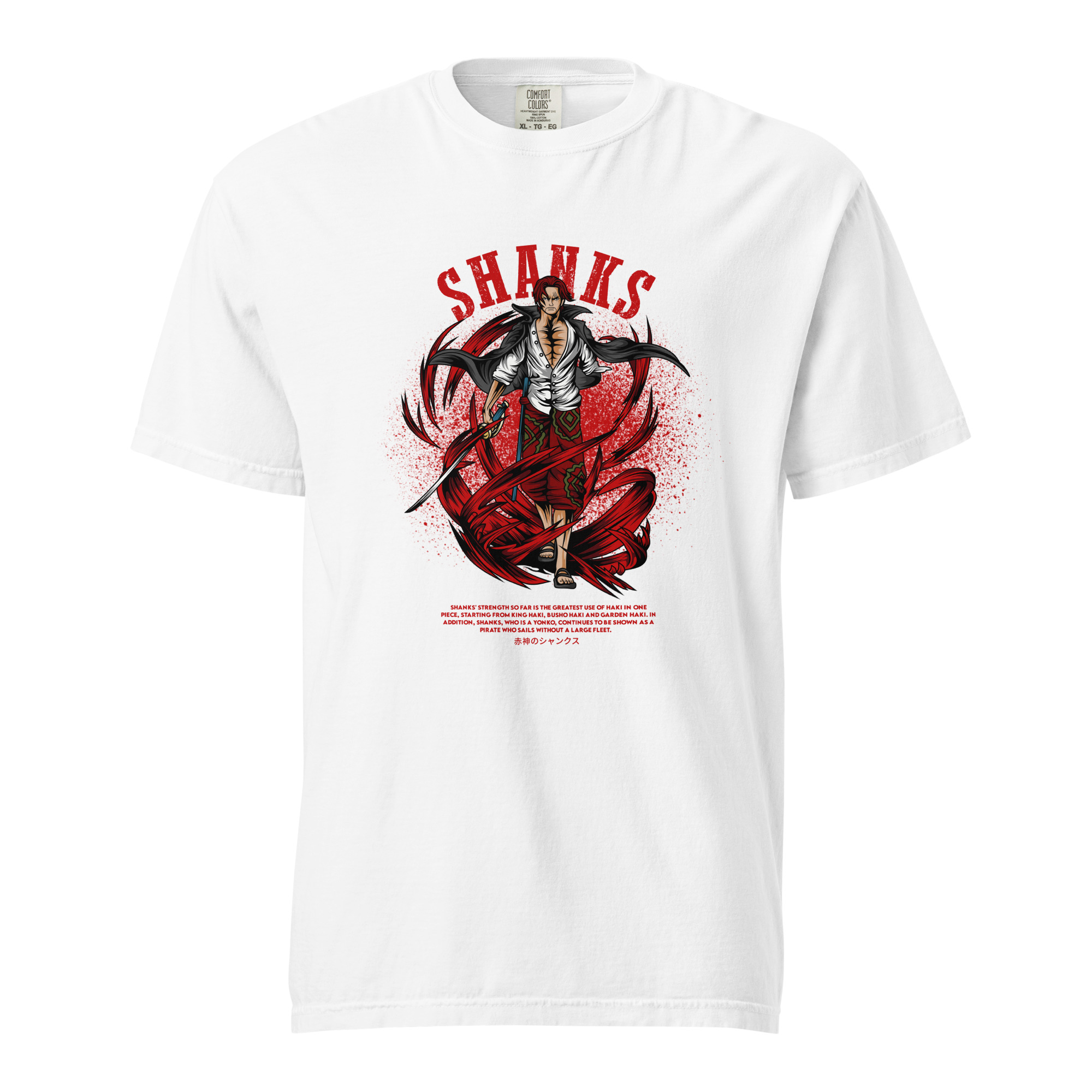 Dive into the world of high seas and epic adventures with our “Emperor Shanks Valor Tee.” Crafted for the fans of the legendary pirate Shanks from the iconic One Piece universe, this T-shirt embodies the spirit and power of one of the Four Emperors. Made from 180 GSM, 100% super combed cotton, this tee promises unparalleled comfort and durability. Each fiber is pre-shrunk and bio-washed, ensuring the graphic of Shanks, wielding his formidable Haki powers, remains as vivid as your first adventure. The Lycra ribbed neck and unisex regular fit design make it a versatile addition to any wardrobe, ready to accompany you whether you’re navigating the urban jungle or setting sail for the New World. Embrace the essence of Shanks’ leadership, power, and charisma with this exclusive piece of One Piece merchandise.