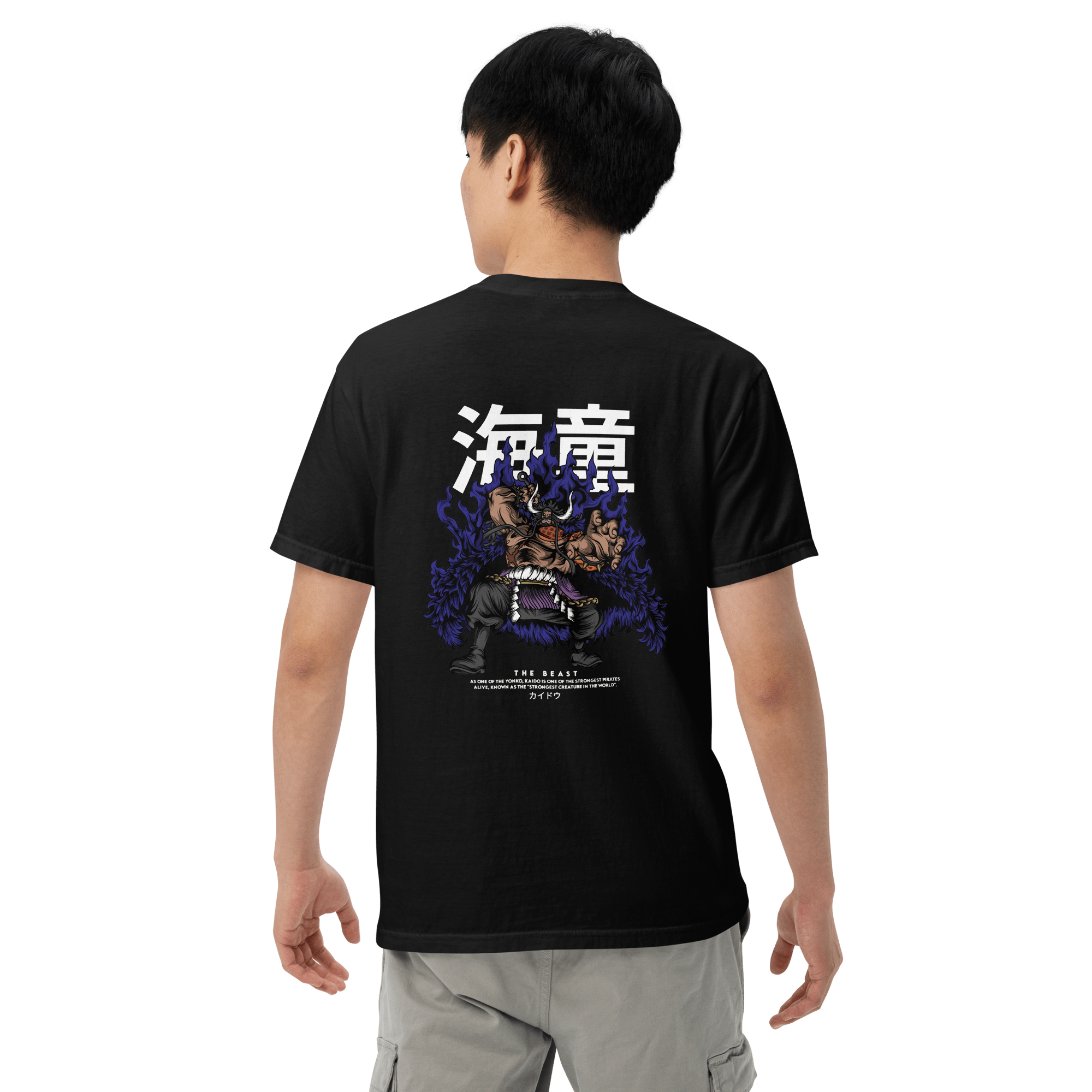Unleash the might of the “Strongest Creature Alive” with the Kaido Conqueror’s T-Shirt, celebrating the imposing presence of Kaido in the captivating world of One Piece. Crafted with meticulous attention to detail, this t-shirt captures the essence of Kaido’s unparalleled strength, relentless ambition, and fearsome reputation as one of the strongest characters in the One Piece universe.