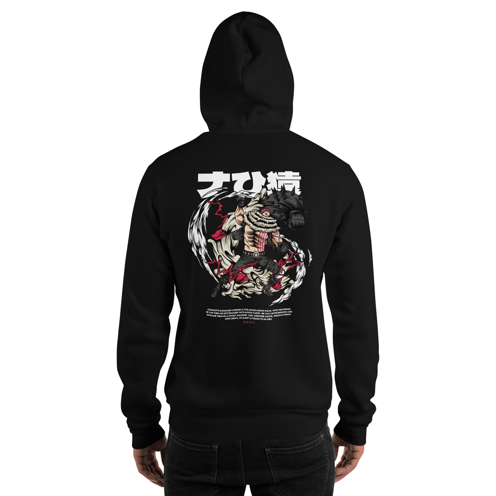 Channel the indomitable spirit of strength with the Premium Katakuri Sweet Commander Hoodie, honoring one of the most formidable antagonists in the One Piece universe. Infused with the essence of power and resilience, this hoodie stands as a symbol of Katakuri’s unwavering presence.